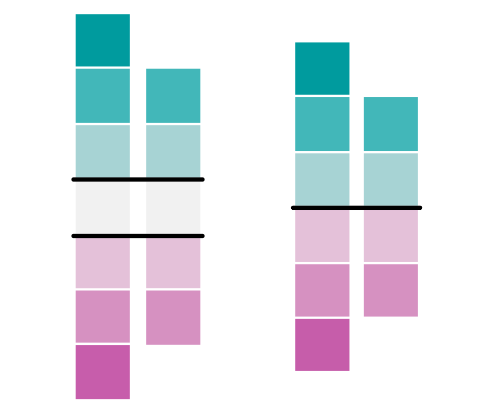 Diverging scheme - shows order & visualize the distance of all values from a critical middle value or class