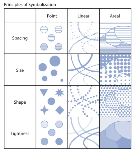 most effective when applied to ordinal or numerical dataineffective with nominal dataAltering symbol shape can have dramatic effects on the appearance of map features