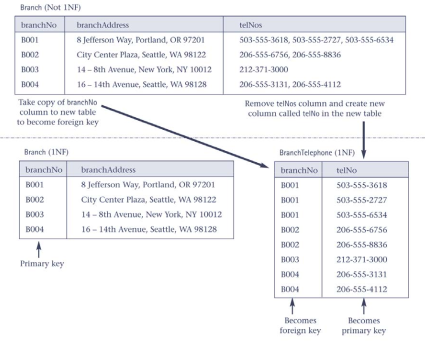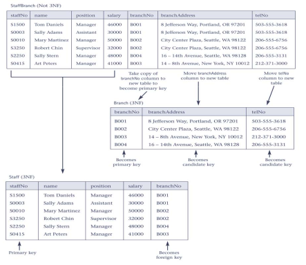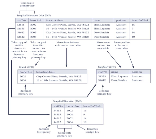 the process involves assigning attributes to tables based on the concept of determination in Relational Database Modeling