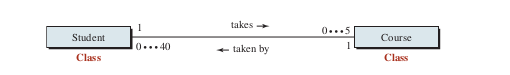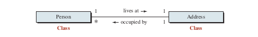 An association between two classes shows a relationship. For example, we can define a class named Person and another class named Address
