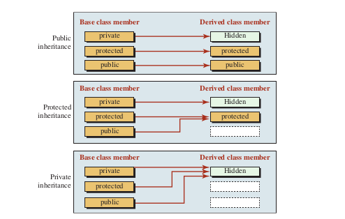A private member in the base class becomes an inaccessible (hidden) member in the derived class
