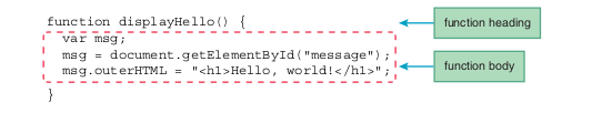A JavaScript function might receive arguments, will perform a calculation, & might return an answer