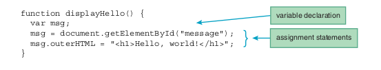 The declaration statement var msg; -has msg as a variable